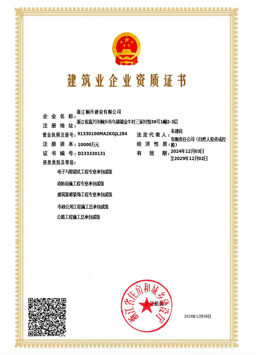 浙江桐升建设有限公司,坐落于素有“丝绸之府、鱼米之乡”著称的杭嘉湖平原境内—桐乡。公司成立于2021年,是集房建总承包壹级、建筑装修装饰工程专业承包贰级、消防设施工程专业承包贰级、电子与智能化工程专业承包贰级、市政公用工程施工总承包贰级的综合型建筑企业。公司注册资本10000万元,公司成立短短一年多时间以来,年施工总产值近7亿元,从业人员近2000人,公司有各类建造师30余名,有职称的工程技术和经济管理人员50余名。